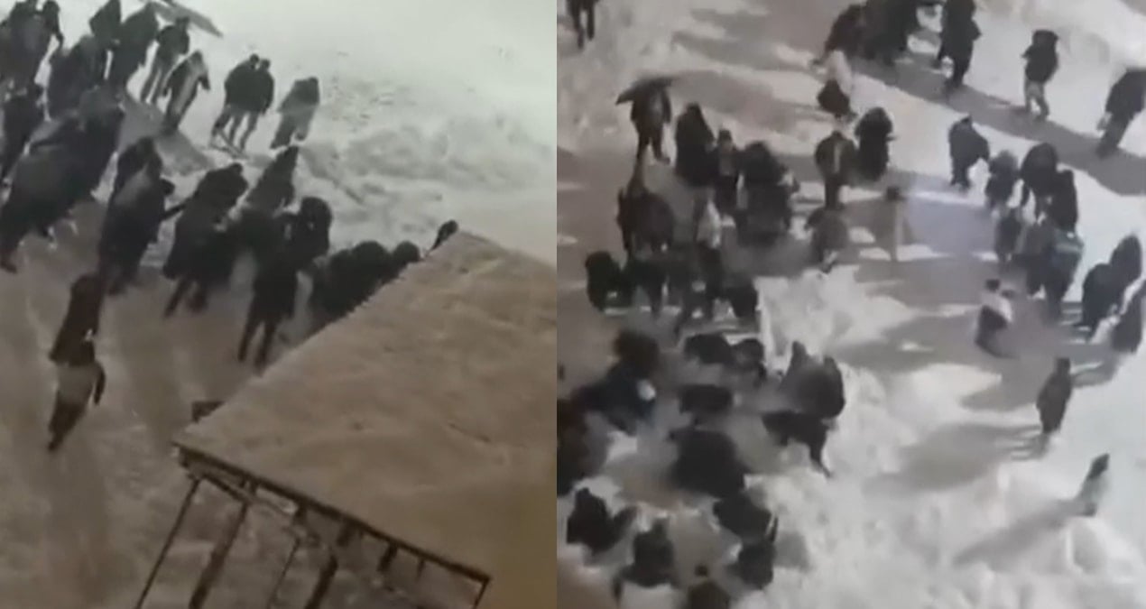 Hakkari Merzan Mahallesi’nde KYK Müdürlüğü binası önünden geçen iki kız öğrencinin üzerine, çatıda biriken kar kütlesi düştü. Kar kütlesinin altında kalan öğrenciler, çevredeki diğer öğrencilerin yardımıyla bulundukları yerden çıkarıldı.